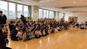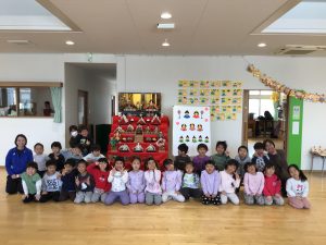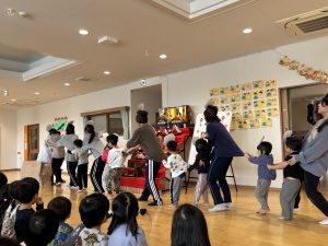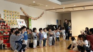 子どもたちに伝えた後はひよこ組かららいおん組まで歌や手遊びを発表しましたよ。みんな緊張しながらもいつもお部屋で行っている楽しい手遊びや歌を披露してくれました!