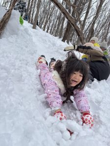 子ども達は、自分達で米ぞりのコースを作ったり、大きな雪玉を友達と力を