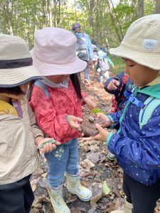 見つけて・触って・作って…発見がいっぱいで前に進めないほど夢中な子ども達!自然の中で五感を使って遊び、たくさんの「不思議」や「楽しい」に出会えた一日になりました!