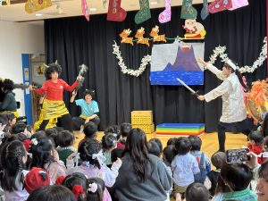 【劇の桃太郎】先生たちのオリジナルの演技もあってみんなで大笑い。