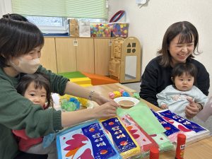 今回は『製作遊び』がテーマとなっており、1歳~2歳のお友達が2名遊びにきてくれましたよ。