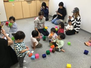 0~2歳のお子さんが7名、保護者の方と一緒に遊びに来てくれました!