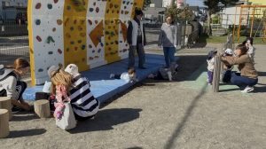 ボルダリング下のマットでは、「ジャンプ!ジャンプ!」の声に合わせてジャンプをしたり、沈む感覚が楽しくて繰り返し走ったりして体を動かしながら遊びました!